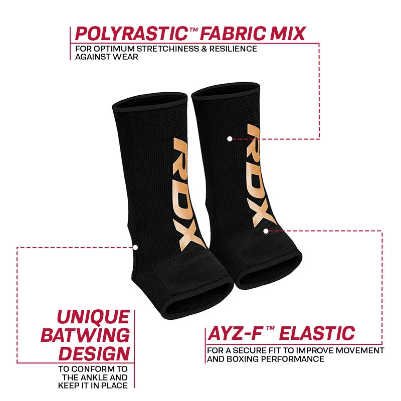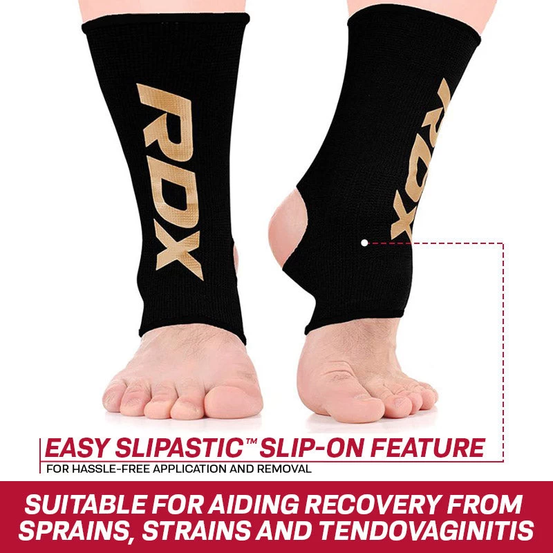 An extra strong and super stretchy ankle support for athletes. Ideal for preventing injuries and essential for Tendovaginitis or sprain recovery. This high tech ankle brace is the perfect hybrid of stretch and strength, giving boxers and MMA fighters a product that lasts and lasts, whilst always retaining its shape. A batwing design hugs the ankle, a special elastic gives enhanced support and security, and the quick slip-on feature makes it so easy to use. Ideal for slipping into your kitbag and can be machine washed. (SMALL & MEDIUM SIZES RECOMMENDED FOR UP TO 14 YEARS OF AGE)