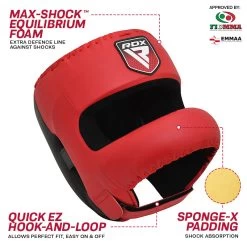 Ensure the utmost protection with the APEX head guard with nose protection bar by RDX. The face guard protects your head and dorsum of the nose and eliminates the risks of getting serious injuries/wounds. High-tech LumeXTM padding inside dissipates the shock evenly and gives you a no impact feel. Precisely designed boxing head gear delivers safety while maintaining an optimal field of vision. A prime combination of Max-shockTM Equilibrium foam and SpongeX padding on the mould makes the head gear shock absorbent and perfect for MMA, boxing training.Suede leather used on the inner side adds comfort and allows a perfect fit on different head sizes. The outer surface covered with super skin engineered leather provides long-lasting durability and resilience to this training gear Quick EZ Hook-and-Loop closure keeps the gear in place during practice and allows easy on and off. FEDERAZIONE ITALIANA GRAPPLING MIXED MARTIAL ARTS (FIGMMA) Approved