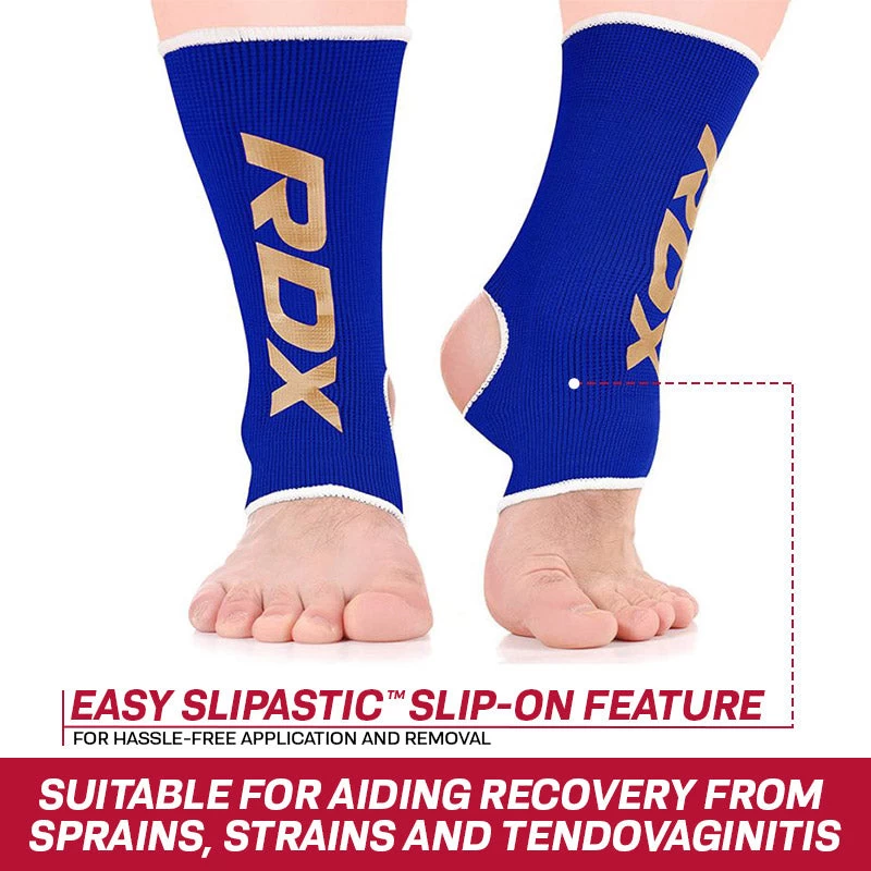An extra strong and super stretchy ankle support for athletes. Ideal for preventing injuries and essential for Tendovaginitis or sprain recovery. This high tech ankle brace is the perfect hybrid of stretch and strength, giving boxers and MMA fighters a product that lasts and lasts, whilst always retaining its shape. A batwing design hugs the ankle, a special elastic gives enhanced support and security, and the quick slip-on feature makes it so easy to use. Ideal for slipping into your kitbag and can be machine washed. (SMALL & MEDIUM SIZES RECOMMENDED FOR UP TO 14 YEARS OF AGE)
