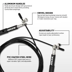Featuring weighted aluminum handles, along with our unique 360-degree rotation system, the RDX Adjustable Skipping Jumping Rope is designed for those who enjoy intense training sessions and demand the very best from their equipment. The swivel design means that you can jump rapidly without the rope getting tangled, and it’ll even facilitate multiple rotations per jump too. Perfect for speed users and even those who need a training rope. This package comes complete with an attractive RDX bag so that you can keep your equipment stored securely and tangle-free.