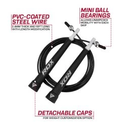 Featuring a sturdy 10ft, 2.4mm steel wire encased in PVC, the RDX Skipping Rope will prove to test your endurance. Constructed from a light polymer 16 cm in length, the handles hold comfortably with uniform weight distribution while mini ball bearings in the metal tops of the handles eliminate drag and ensure unimpeded 360 degree rotation. Moreover, the handles have detachable bases that you can use to add weights to your skipping rope. A great fitness tool, the skipping rope can be integrated into any training regimen. Moreover its adjustability also allows infinite customization. To ensure it never spoils or tangles, the rope comes with a nylon bag for storage.