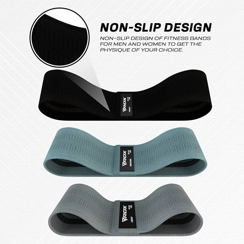 This anti-slip and durable fabric resistance band from RDX is made from poly-cotton to ensure strong resistance and provides extra elasticity during workouts at home gym. A top-notch exercising tool for yoga, Pilates, fitness and a perfect curvy butt. Light, medium and heavy, this resistance bands set comes in 3 levels of workout bands that are perfect for various strength level exercises at home gym. Our Light fabric resistance band has a total length of 660.4mm & can bear strength from 18 to 32lbs. Medium resistance band has a total length of 762mm and weight-bearing capacity of 30-50lbs. Heavy fabric resistance band for home gym features total length of 863.6mm and 45-70lbs strength. A perfect combination of poly-cotton & latex silk with uniform thickness of 3.43mm & 80.01 width these gym resistance bands are lightweight, highly stretchable, snap proof & durable. Wider, more comfortable fit with premium comfort to perform all booty exercises at home gym. Booty bands are featherweight & easy to carry in a gym bag. Do not miss any workout and train yourself anywhere with portable & high-quality fabric glute bands. Comes in 3 colors set with a carry bag.