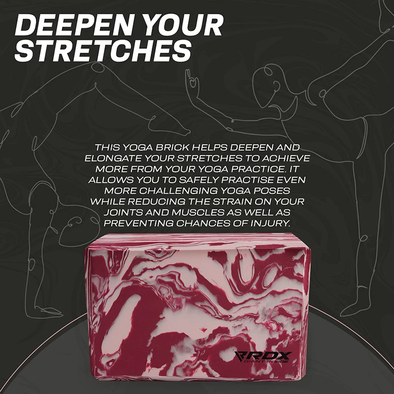 - DEEPENS YOUR STRETCHES This yoga brick helps deepen and elongate your stretches to achieve more from your yoga practice. It allows you to safely practise even more challenging yoga poses while reducing the strain on your joints and muscles as well as preventing chances of injury. The slightly bevelled edges provide extra grip and comfort so you can prolong your poses.