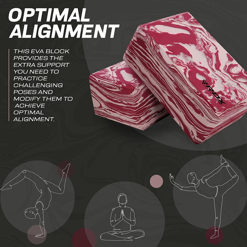 - OPTIMAL ALIGNMENT You don’t need an extra pair of hands to attain stability and correct your alignment while practising by yourself at your home gym. This Eva block provides the extra support you need to practice challenging poses and modify them to achieve optimal alignment. Get yoga brick in your favourite double colours with an exercise manual to charge-up your yoga routine.