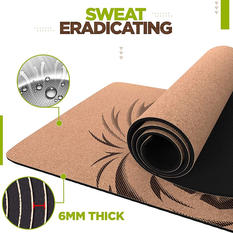 - NON-SLIP SURFACE– 6mm thick non-slip/anti-skid natural cork mats with rubber padding surface design is an ideal Pilates mat providing firm grip even on wet surfaces making it perfect for Hot yoga, Pilates, Bikram, Aerobics, Stretching, Meditation and outdoor workouts for nature lovers at home gym.