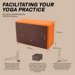- FACILITATING YOUR YOGA PRACTICE Versatile yoga brick can be used under hands and feet to modify poses for your flexibility level. Ideally sized (23*15*9.8cm) yoga block also serves as a balance cushion under head or torso to increase comfort in restorative poses. The lightweight and portable foam block is the perfect home gym tool and a must-have in your gym kit for studio or outdoor practice.