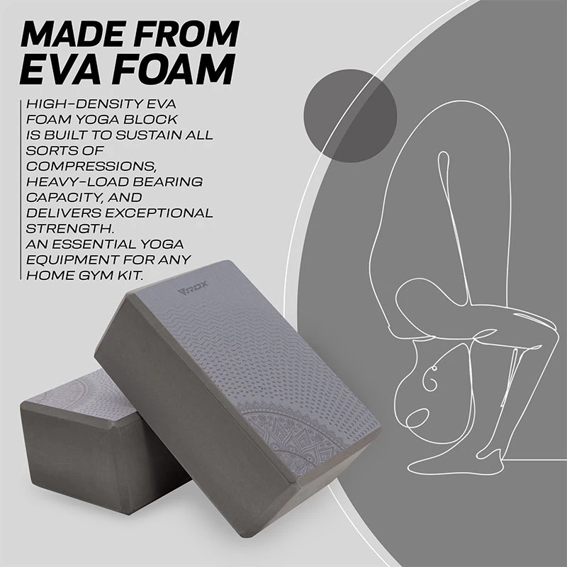 - MADE FROM EVA FOAM High-density EVA Foam yoga block is built to sustain all sorts of compressions, heavy-load bearing capacity, and delivers exceptional strength. An essential yoga equipment for any home gym kit. The durable and soft block is sturdy enough for long-lasting use and yet gentle on the joints and muscles to provide comfort as well as prevent strains or serious injuries.