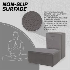 - NON-SLIP SURFACE Textured surface offers non-slip grip and superior traction for reliable support, extra stability and balance to achieve movement control and improve alignment in your poses. Suitable for all ages and all level beginners, intermediate and experienced yogis.