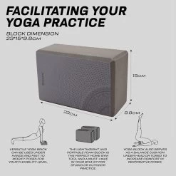 - FACILITATING YOUR YOGA PRACTICE Versatile yoga brick can be used under hands and feet to modify poses for your flexibility level. Ideally sized (23*15*9.8cm) yoga block also serves as a balance cushion under head or torso to increase comfort in restorative poses. The lightweight and portable foam block is the perfect home gym tool and a must-have in your gym kit for studio or outdoor practice.