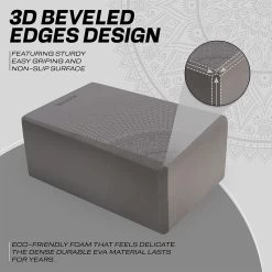 Lightweight and compact design facilitates block-assisted yoga practice anywhere whether it’s in your room or under the shade of a giant oak tree. Sturdy, high-density foam yoga block delivers exceptional strength to help prolong your poses and holds its position even under considerable weight. It also retains shape after all sorts of compressions for long-lasting durability. Eva foam material offers a non-abrasive surface that increases comfort while you flex and stretch out during practice, or ease-into restorative poses. Use the yoga brick under your hands and feet to deepen stretches, improve flexibility and modify poses to match your difficulty level. It also serves as meditation cushion under your head and torso to relax and ensure proper alignment. The soft block is gentler on the joints and muscles during arm balances and backbends, which reduces the strain on muscles and the chances of injury. Non-slip textured surface offers superior traction for the stability and balance needed in your practice to maintain control of movement and improve alignment. Slightly bevelled edges provide a firm and easy-grip surface so you can confidently conquer even the more advanced yoga poses. Get additional help by looking up poses from the included exercise manual.