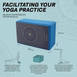 - FACILITATING YOUR YOGA PRACTICE Versatile yoga brick can be used under hands and feet to modify poses for your flexibility level. Ideally sized (23*15*9.8cm) yoga block also serves as a balance cushion under head or torso to increase comfort in restorative poses. The lightweight and portable foam block is the perfect home gym tool and a must-have in your gym kit for studio or outdoor practice.