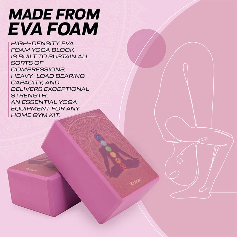 - MADE FROM EVA FOAM High-density EVA Foam yoga block is built to sustain all sorts of compressions, heavy-load bearing capacity, and delivers exceptional strength. An essential yoga equipment for any home gym kit. The durable and soft block is sturdy enough for long-lasting use and yet gentle on the joints and muscles to provide comfort as well as prevent strains or serious injuries.