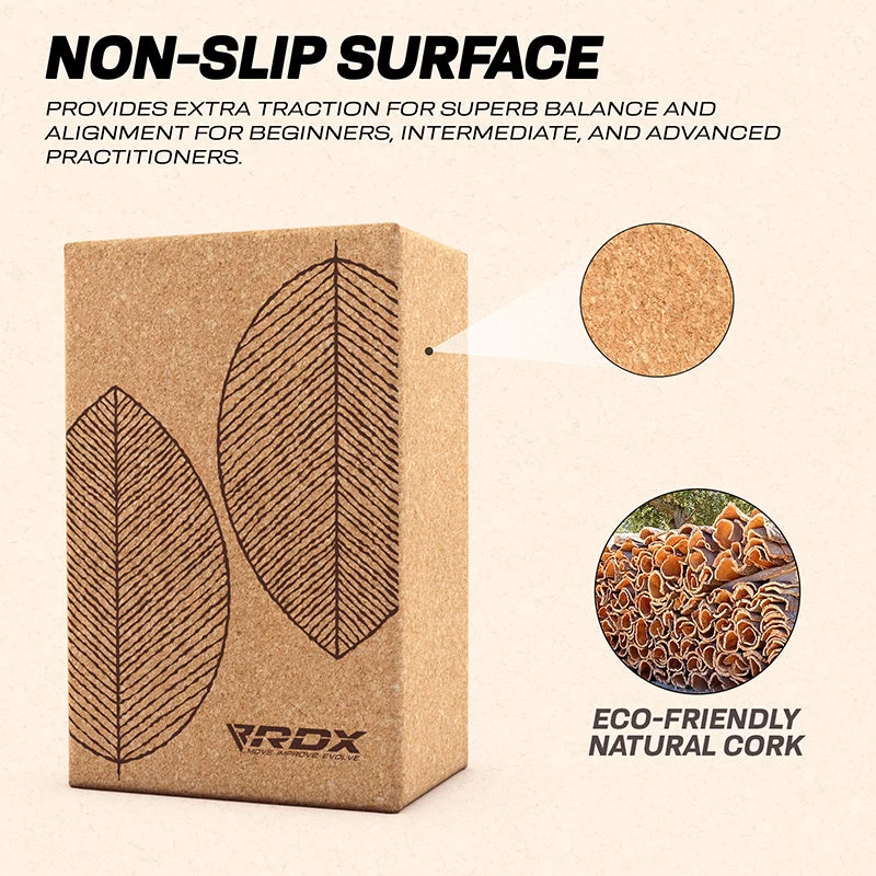 - NON-SLIP SURFACE Textured surface offers extra traction to securely hold poses for prolonged yoga exercises. The non-slip cork block also helps achieve extra stabilization in balancing poses and alignment for all beginners, intermediate practitioners and advanced yogis. Impermeable, moisture-proof, antibacterial material is ideal for sweaty workouts and provides easy clean up with a damp cloth.’