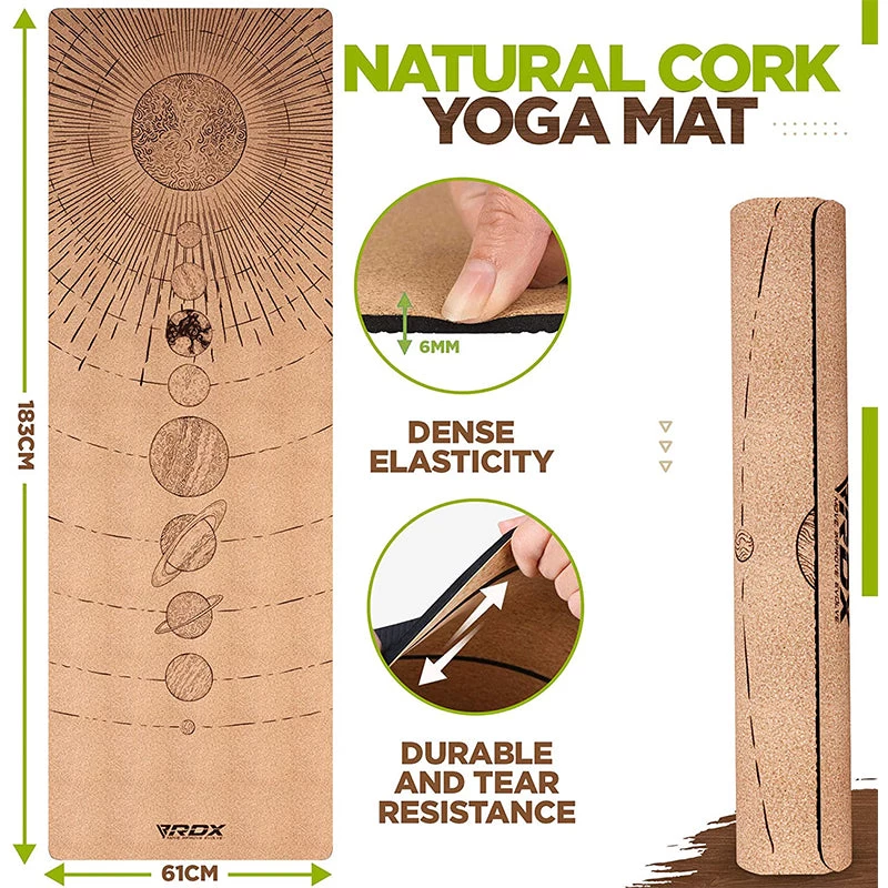 - NON-SLIP SURFACE- 6mm thick non-slip/anti-skid natural cork mats with rubber padding surface design is an ideal Pilates mat providing firm grip even on wet surfaces making it perfect for Hot yoga, Pilates, Bikram, Aerobics, Stretching, Meditation and outdoor workouts for nature lovers at home gym.
