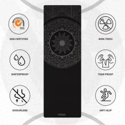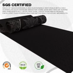 - SGS CERTIFIED- Made of biodegradable and sustainable materials with high durability, our exercise mats for home gym are free of toxins and SGS certified. Latex-free dual-layer yoga mats provide excellent cushioning and can withstand everyday workouts.