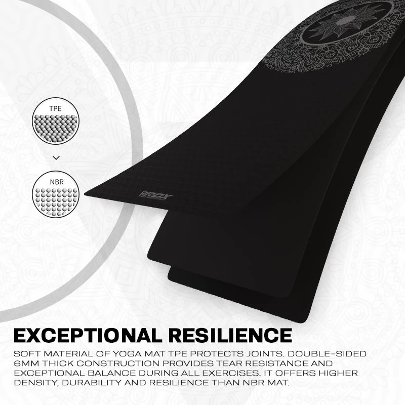 - EXCEPTIONAL RESILIENCE- Soft fit of yoga mat TPE protects your joints while double-sided 6mm thick construction is not only tear resistant but also provides exceptional balance during all exercises at home gym. Non-slip/anti-skid surface on both sides offers higher rebound and enhanced grip for a fulfilling yoga experience.