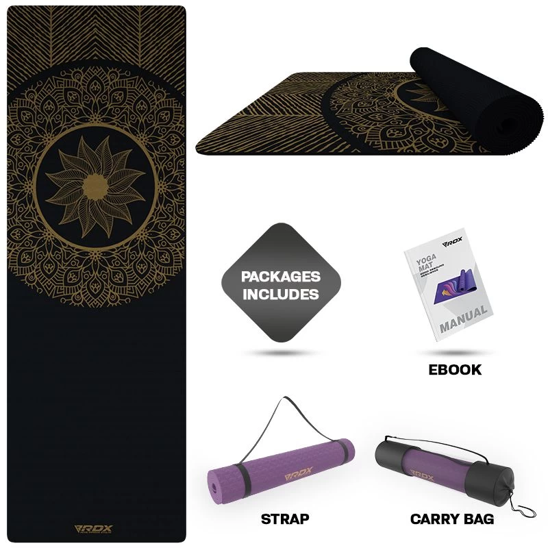High density, fine-textured foam top surface of 6mm thickness provides higher rebound resilience to these mats to protect joints and facilitate all types of workouts yoga, Pilates, physio or toning exercises. RDX’s TPE Yoga Mats are SGS certified and free of toxins. Our extremely soft, non-slip texture, biodegradable TPE yoga mats offer comfort and security at an affordable, budget price. So, embark on your yogic journey with gratitude and fulfilment by aligning your energy to discover perfect balance of mind, soul and body.