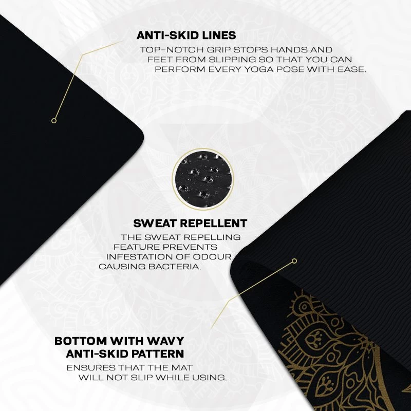 Our workout mats are made of premium TPE that is non-absorbent, water-resistant, and non-pungent and accumulation of dust and sweat. The anti-skid/anti-slip surface of dual-layer gym mat prevents slippage and offers a firmer grip during intense poses ensuring fluid movement. Exercise mats for home gym features double-layered, tear-proof construction in 183x61x0.6cm dimensions ensure the exercise mat is durable and built to accommodate users of all sizes.