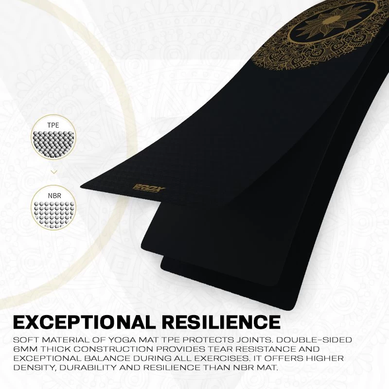 - EXCEPTIONAL RESILIENCE– Soft fit of yoga mat TPE protects your joints while double-sided 6mm thick construction is not only tear resistant but also provides exceptional balance during all exercises at home gym. Non-slip/anti-skid surface on both sides offers higher rebound and enhanced grip for a fulfilling yoga experience.