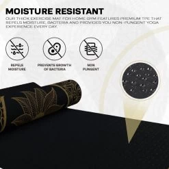- MOISTURE RESISTANT- Our thick exercise mat for home gym features premium TPE that repels moisture, bacteria and provides you non-pungent yoga experience every day.