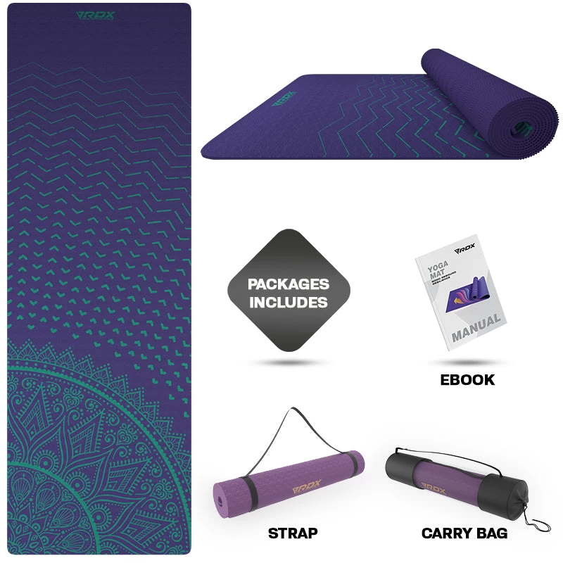 RDX’s TPE Yoga Mats are SGS certified and free of toxins. High density, fine-textured foam top surface of 6mm thickness provides higher rebound resilience to these mats to protect joints and facilitate all types of workouts yoga, Pilates, physio or toning exercises. Embark on your yogic journey with gratitude and fulfilment by aligning your energy to discover perfect balance of mind, soul and body. Our extremely soft, non-slip texture, biodegradable TPE yoga mats offer comfort and security at an affordable, budget price.