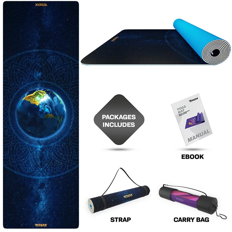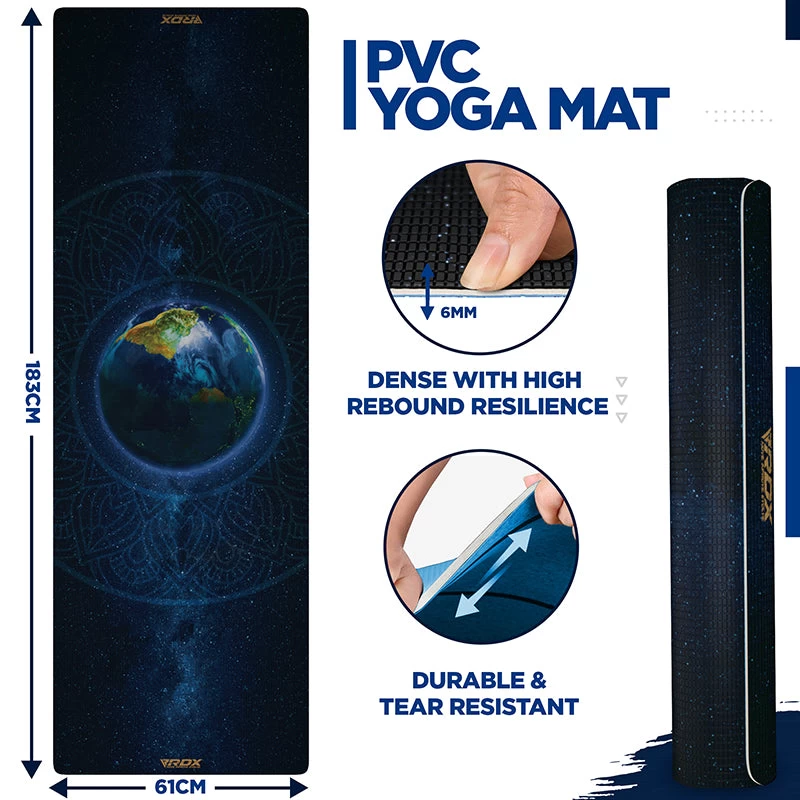 Our studio standard, 6mm thick yoga mat PVC offers your joints the protection they need. Submerge yourself into the wholesomeness of yoga with 6mm of cushioning to protect your joints and keep you warm as you weave through the session at home. If you are interested in standing exercises like the Ashtanga yoga then you need a mat that gives you a steady base with a firm grip on the floor. Whether you are a seasoned yogi searching for the perfect cardio workout mat, a pilates enthusiast looking for a suitable pilates mat for home or would like a pro fitness mat for other floor based routine, this mat is for you. Our budget friendly exercise mats are 6P & latex-free for a non-toxic, wholesome yoga experience. Available in sensational designs, a lightweight carry strap and bag. The dual-layered, tear-proof, aesthetically designed mat is easy to clean and maintain. Open cell technology not only manages sweat but prevents the buildup of germs and pungent odour.