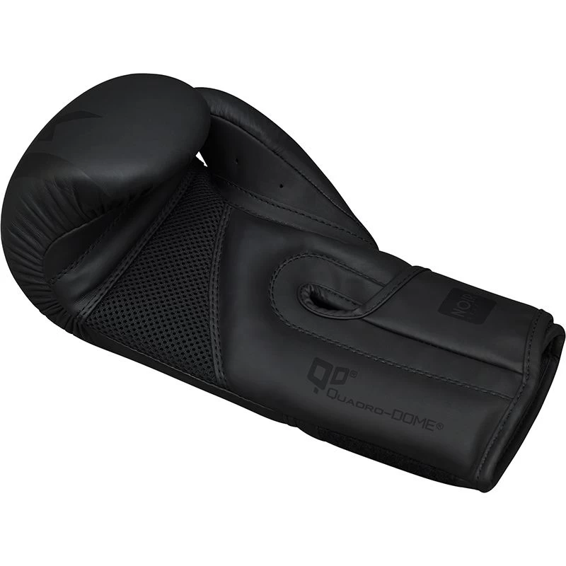 - Quadro-dome mould boxing gloves for impact-absorption with ventilating nylon mesh palm and antimicrobial inner, and a Quick-EZ hook-and-loop strap.