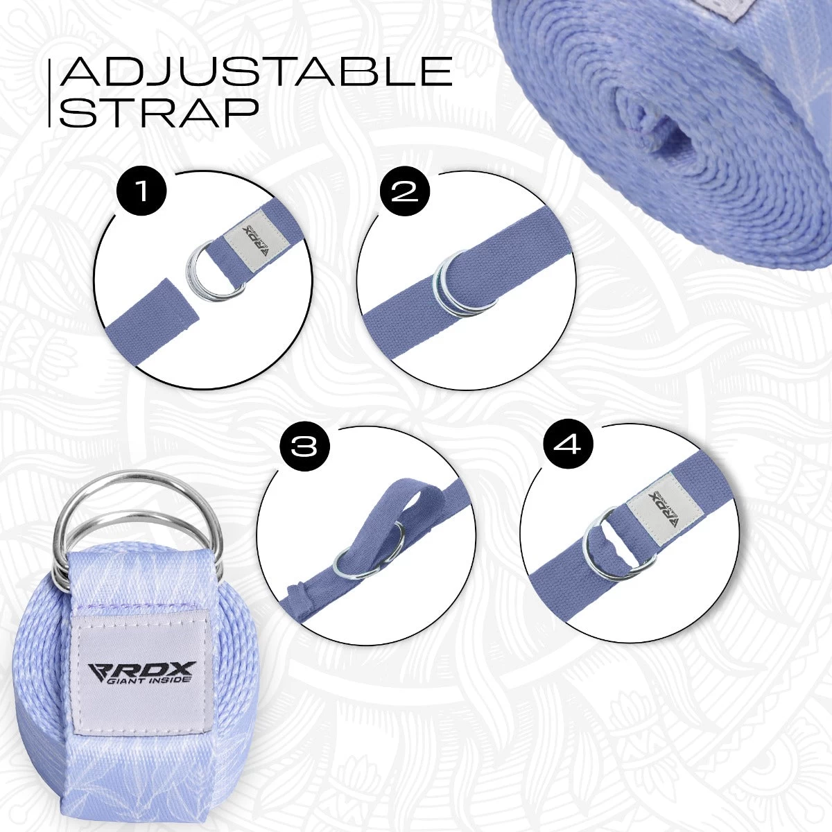 Bridge the gap between your current fitness workout and yoga goals with RDX’s eco-friendly Yoga Straps. Deepen your yoga practice and maximize your performance by challenging flexibility, strength and endurance with this versatile yoga accessory. Made from thick and sturdy premium poly-cotton that is sustainably sourced and holds firm to give you confidence for extending reach and improving mobility in more challenging poses. Our stretching strap is easy to use and simple enough to tie up for your use, allowing you to grab limbs that would be otherwise challenging. Adjustable 8ft long loop strap conforms to perfect alignment of shoulders and back, or stretch out muscles of legs and arms for unlimited yoga poses. Ideally endorsed with 3.8cm width and 0.13cm thickness, our yoga strap is perfect for physical therapy and rehabilitation, yoga exercises at home, Pilates or athletic warm-ups at the gym. Made with soft materials with adjustable double D rings which are rust-proof and unbreakable. A must-have in your yoga kit for studio practice or working out at your home gym. Our easily machine washable yoga stretch strap offers convenience of use and non-slip grip for sweaty hands during intense workouts. Capable of withstanding wear-and-tear from daily, vigorous routines. Comes with a carry bag and exercise manual so you won’t miss any workout day. Pick your favourite design to showcase your unique personality.