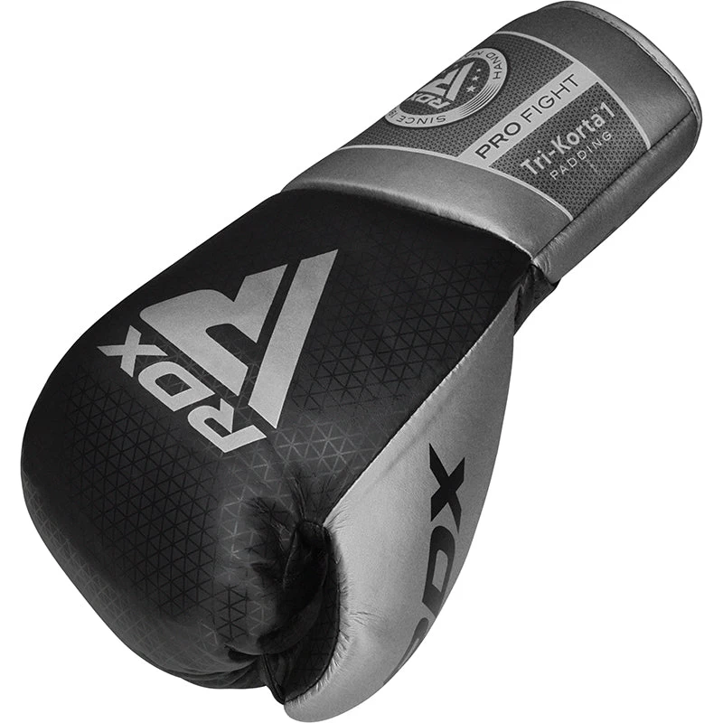 Unleash the dragon and burn every opponent down with the latest Mark Pro Boxing Gloves by RDX. Manufactured using premium Super Skin combat leather outside for extra resilience against wear and tear and Dazzle Fabric inside for breathability and comfort. These pro fight gloves features latest Tri-Korta 1 MOULD with Sponge X PADDING for ultimate resistance against high intensity force. Compressed EVA-LUTIONTM SHEET offers great flexibility and softness without adding extra weight. Anti-tear and waterproof properties of this sheet adds extra durability. Polygonal Fusion FOAM for impact-resistance and Max ShockTM Equilibrium Foam + Sponge X PADDING on cuffs to absorb the blunt of impact and distributes force equally across the gloves.