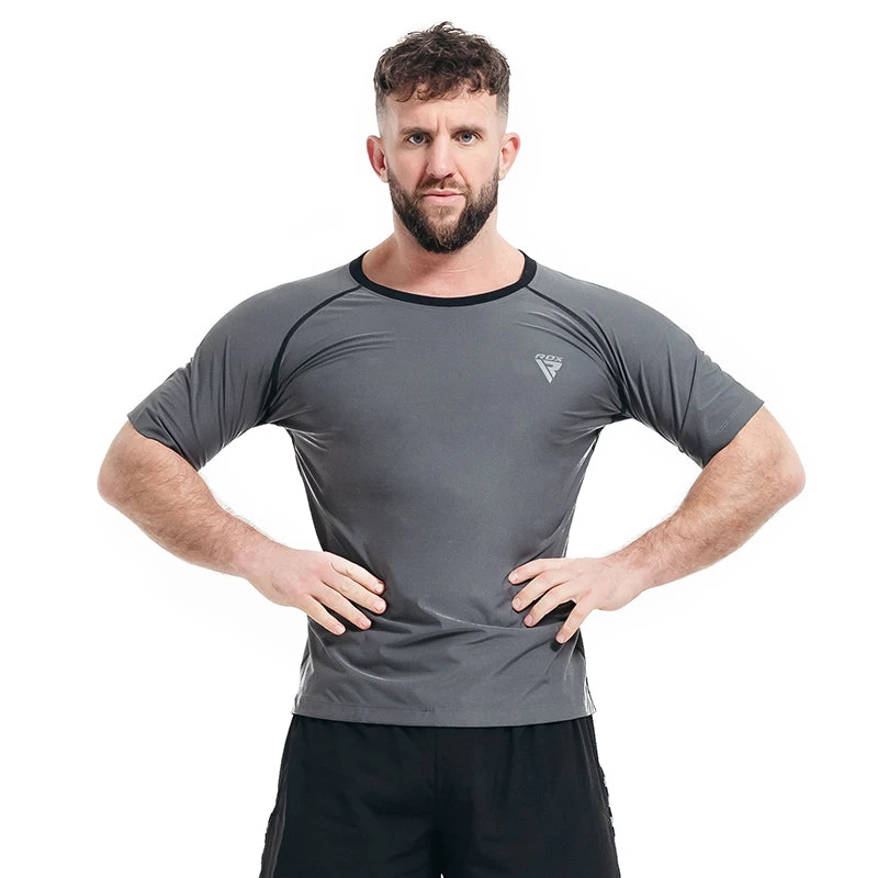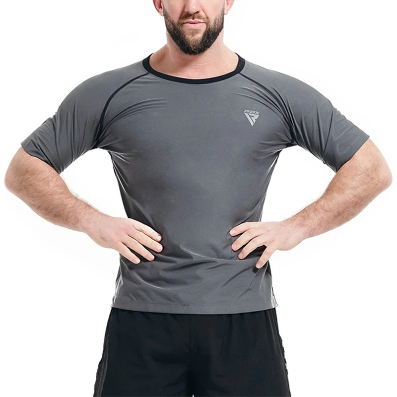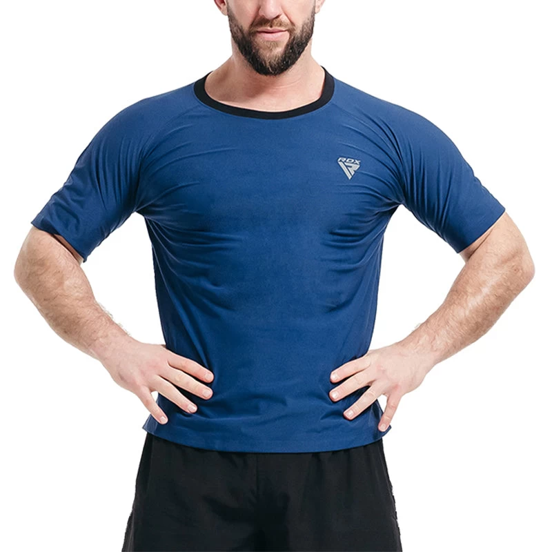 Unlock 5x sweat power with the RDXs latest sweat T shirt for men (REACH & OEKO-TEX 100 compliant). Heat Suit Tech’s blue lining expedites your workout efficiency, sculpting your body along the way. Hugging fabric moves freely, reflective bits keep you seen, and anti-slip grip stays put. From walks to sprints, conquer it all in comfort.