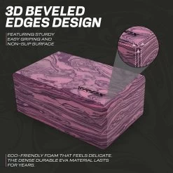 Sturdy, high-density foam yoga block delivers exceptional strength to help prolong your poses and holds its position even under considerable weight. Eva foam material offers a non-abrasive surface that increases comfort while you flex and stretch out during practice, or ease-into restorative poses. Use the yoga brick under your hands and feet to deepen stretches, improve flexibility and modify poses to match your difficulty level. It also serves as meditation cushion under your head and torso to relax and ensure proper alignment. The soft block is gentler on the joints and muscles during arm balances and backbends, which reduces the strain on muscles and the chances of injury. Non-slip textured surface offers superior traction for the stability and balance needed in your practice to maintain control of movement and improve alignment. Slightly bevelled edges provide a firm and easy-grip surface so you can confidently conquer even the more advanced yoga poses. Get additional help by looking up poses from the included exercise manual. Lightweight and compact design facilitates block-assisted yoga practice anywhere whether it’s in your room or under the shade of a giant oak tree. It also retains shape after all sorts of compressions for long-lasting durability.
