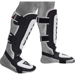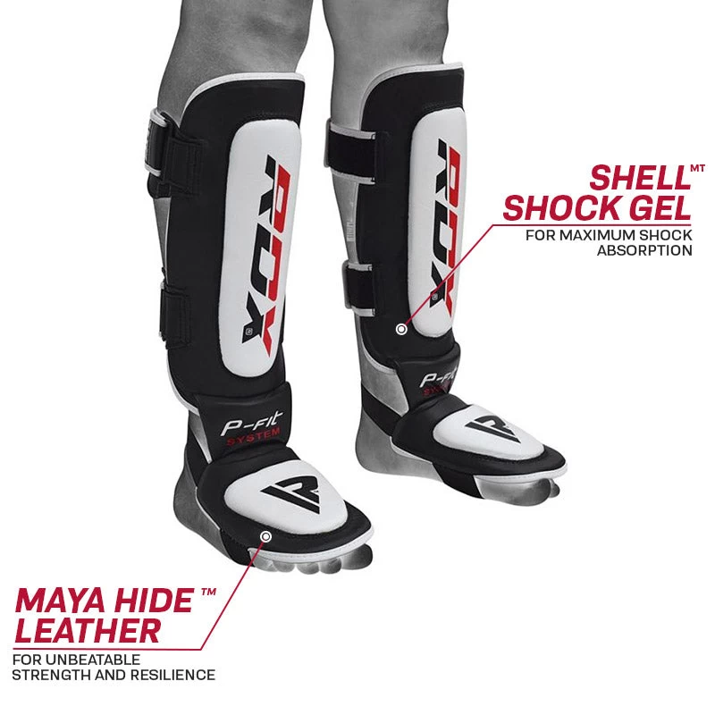 Armour up with the most effective shin guards around. Triple padded to bring you three times the protection for ruthless opponents or tough sparring sessions. Cut from the sturdiest leather and treated for durability, these leather shin pads are virtually indestructible. And featuring a high-tech gel for shock absorption, unique fit system for amazing comfort, and a secure hook & loop fastening for zero budge in the ring, you can stay focused on your enemy whilst still staying nimble on your feet. Robust yet lightweight they will never weigh you down. (SMALL & MEDIUM RECOMMENDED FOR UPTO 14 YEARS OF AGE)