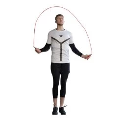 Working towards your mobility, endurance, and strength training goals couldn’t get any easier with RDX’s versatile aluminum alloy speed skipping rope. With its sleek design and professional feel, this exercise jump rope could easily be your new favorite gym rope and go-to speed jump rope at your home gym. Great for a variety of exercises, from basic jump rope routines to XFit or boxing training to improve speed and feet coordination. The lightweight, anti-slip aluminum handle design allows a firmer grip without feeling bulky in hand. This facilitates longer routines without your hands getting tired or wrists straining making our adjustable skipping ropes ideal for all levels. Heavy-duty steel cable with PVC coating is more resilient built to withstand rigorous use and prevents damage to the internal steel cable due to collision with an abrasive surface. The premium cable wire also prevents tangles and bends so you can build up speed and tempo as well. A high-grade ball-bearing swivel system enables smooth rotation without any friction for rapid skipping without breaking momentum. The Self-locking technology instantly locks the cable into place, which facilitates the quick adjustment of the cable’s length for different heights. Removing the need to cut the rope. Available in red, blue, and black color variations with a metallic-finish antimicrobial pouch for portability and additionally an exercise manual to get your cardio started right away.