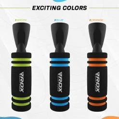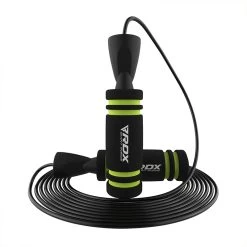 Are your realistic fitness goals starting to seem intimidating or unreachable? If yes, then stop jumping to conclusions and start jumping towards the best version of yourself using RDX Speed Jump Rope with Memory Foam Handles and Weights. Heavy jump rope with durable construction is made for everyday use whether it’s for gruelling gym routines, outdoors trainings or home gym workouts.Premium quality PVC coated cable wire is a top choice for skipping rope enthusiasts who are all about speed. The industrial-strength steel cable rotates around users very quickly, helping them build speed without producing much noise. It also prevents kinking, tangling and bending which can mess up the momentum. A protective, double PVC layer ensures the cable is resistant to scratches as well as wear-and-tear due to collision with abrasive surfaces, which makes your jump rope last longer. An ergonomic handle design with environmental friendly memory foam coating provides firm, non-slip grip for focused skipping. The foam quickly removes sweat from hands so you are comfortable for longer and can take full advantage of your cardio workout. Strong PP material handles are also resistant to breakage and durable enough to hold removable weights (6.0oz / 9.5oz) in a special handle compartment. The loaded weight bars add extra resistance to increase intensity of your workouts and burn more calories. Switching over to high speed skipping routines is just as easy just remove the additional weights from the handlebars to decrease resistance to jumps. A fast-speed ball bearing mechanism, including industrial-strength steel tips, allows the rope to rotate faster, with a smooth and stable swing without any interruptions.The fully adjustable 10.3ft PVC cable that can be quickly customized for any height (6ft 6in and under), without excess cable hanging and interfering with your performance skipping. Suitable for almost everyone, Choose from blue, green and orange colour options to match your style. Our compact and portable speed jump rope comes with an antimicrobial pouch for easy carry and free workout guide to help you train independently.