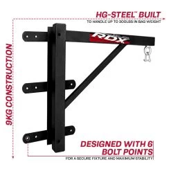 This is a retractable heavy bag wall mount, constructed with a convenient swing away designed to save space in the gym. An ergonomic design that doesn’t compromise on strength, this reinforced high grade steel built bracket is made to hold the heaviest bags and withstand the toughest training sessions. For added wear and tear defiance, it comes with powder coated brackets, an anti-rust treatment for all weather use, and a 6 point bolt system to keep it securely fixed in place. This wall mount heavy bag hanger is easy to assemble and comes with D shackle, wall fixings and instructions.