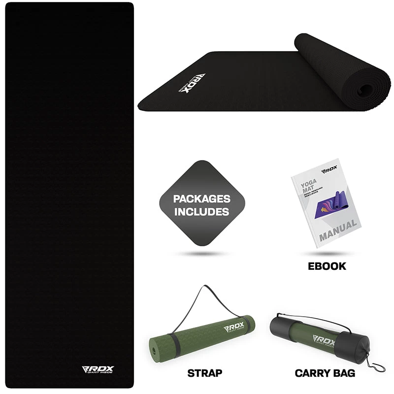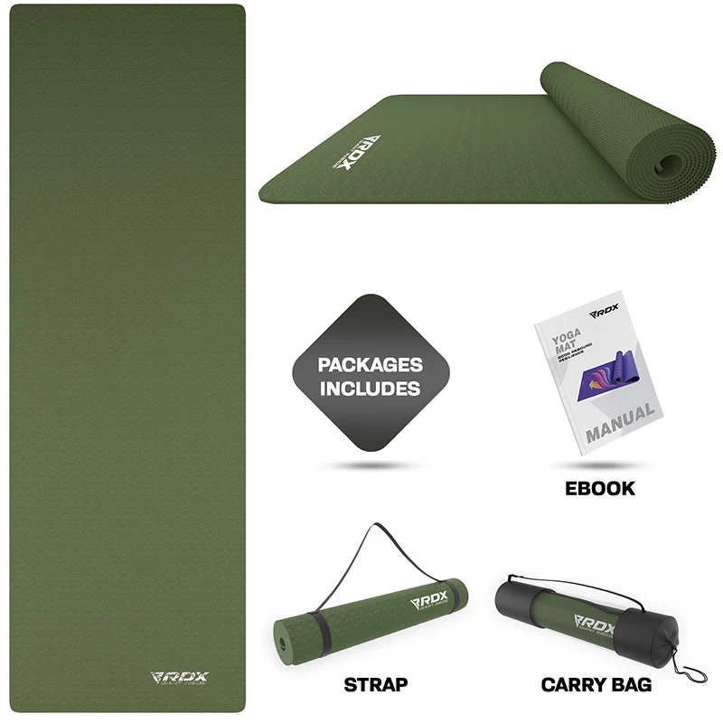 Embark on your yogic journey with gratitude and fulfillment by aligning your energy to discover perfect balance of mind, soul and body. Our extremely soft, non-slip texture, biodegradable TPE yoga mats offer comfort and security at an affordable, budget price. High density, fine-textured foam top surface of 6mm thickness provides higher rebound resilience to these mats to protect joints and facilitate all types of workouts yoga, Pilates, physio or toning exercises. RDX’s TPE Yoga Mats are SGS certified and free of toxins.
